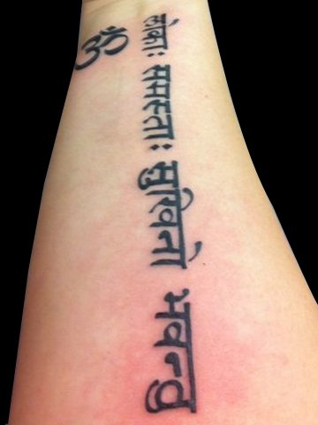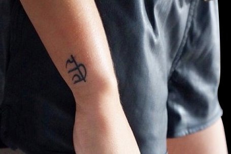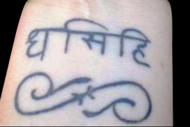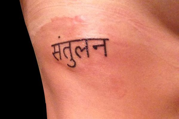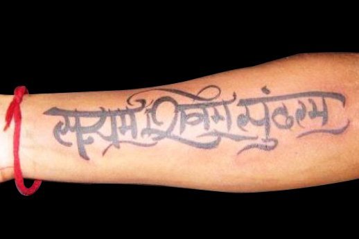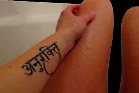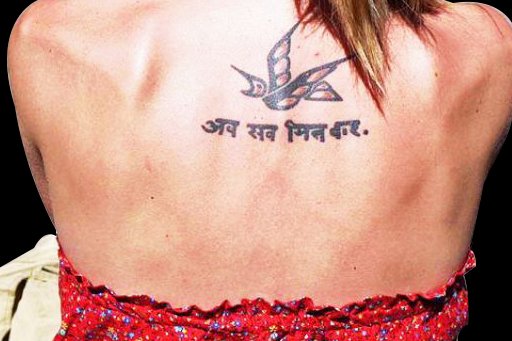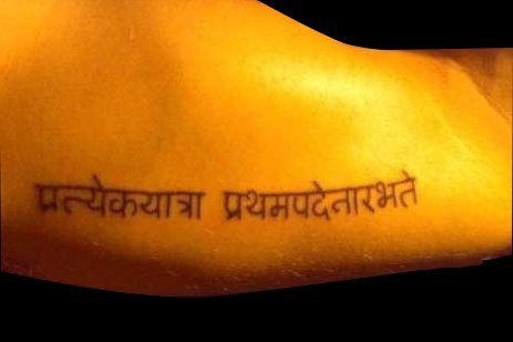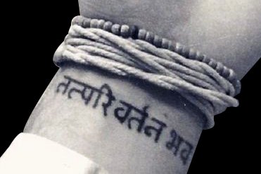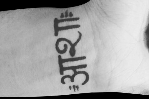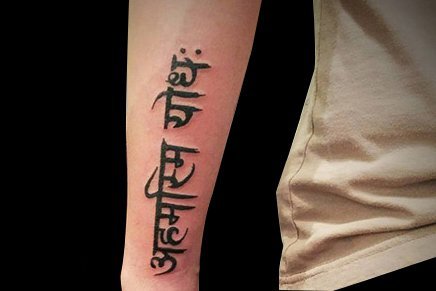 “Av sab min kar”梵语表达的是“现在一切都在一起”。我们可以假定这是某种情况造成的纹身。就像在生活中大型的动荡之后,最终所有的事情堆叠在一起。