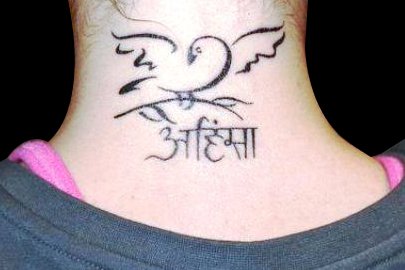 “非暴力政策”对于那些不信仰任何暴行的人来说,这是你简单而时尚的梵文纹身设计杰作。