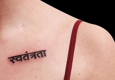 “Swatantrata”在梵语中意味着自由。自由可以从爱、政治、表达和品味等各个方面联系起来。纹身本身就是自由的终极象征,这使得纹身近乎完美。确保你把纹身放在可见的地方,这样你就可以表达你的自由了。