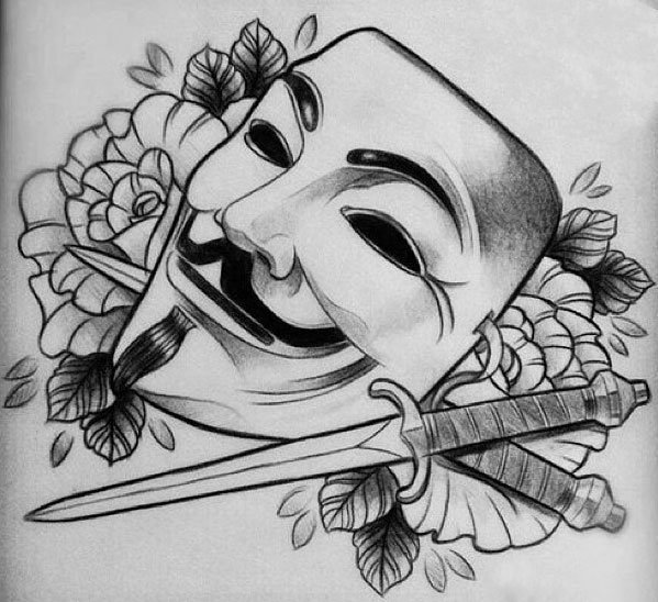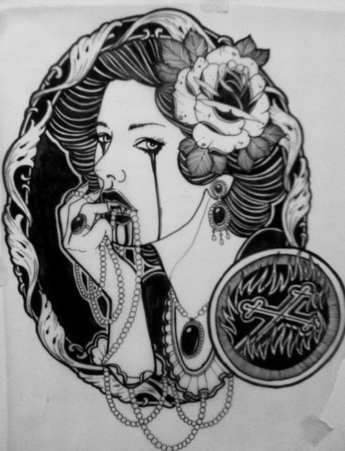 传统的Old school纹身手稿图案主要有:锚,玫瑰,船,燕子,美女,匕首等等。