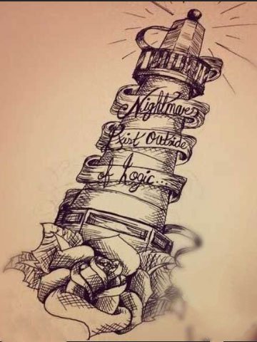 灯塔纹身手稿,象征着希望和光明,当时许多人把它纹在身上,希望人生充满着希望。