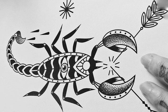 Old school 是一种十分潮流,充满个性的文化,像这款毒蝎子纹身手稿,纹在身上,霸气个性十足。