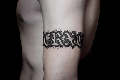 字母臂环纹身,不管是座右铭还是自我诠释都很适合。