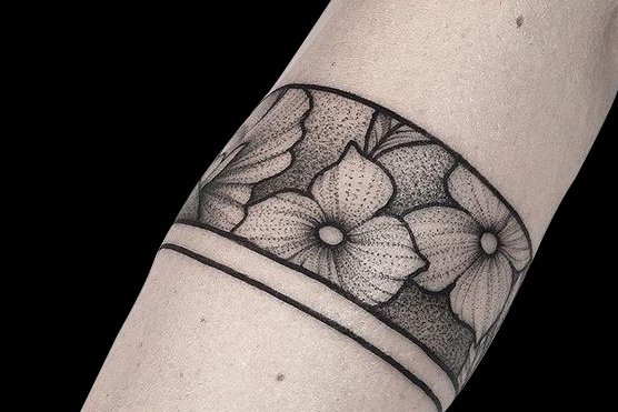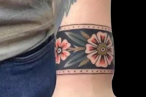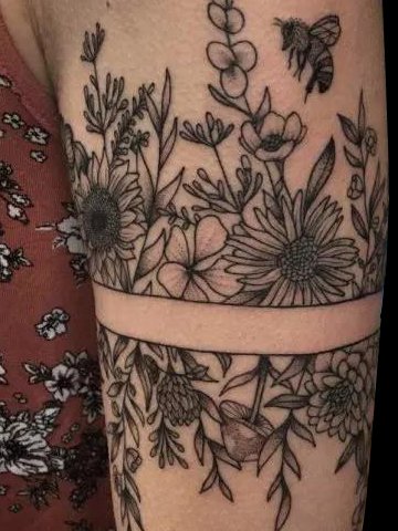 花卉臂环纹身,愿你如春天的花儿般绽放。