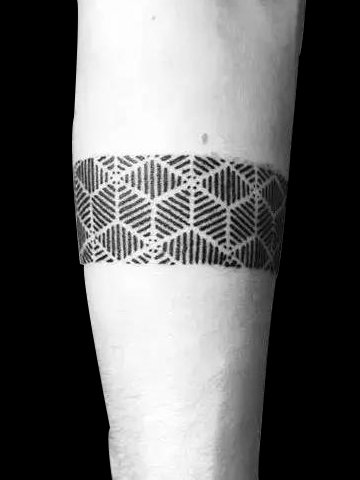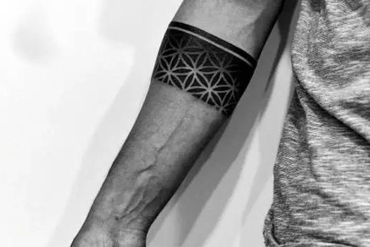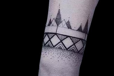 几何线条臂环纹身,给人扑朔迷离的神秘感。