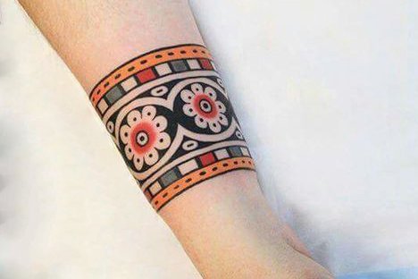 彩色几何图案臂环纹身,就像佩戴着七彩吉祥手环。