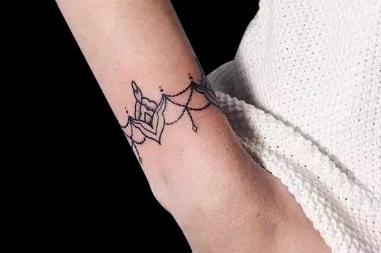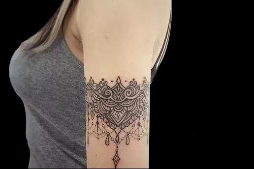 嫌佩戴首饰麻烦?不妨试试小手臂环蕾丝纹身吧。