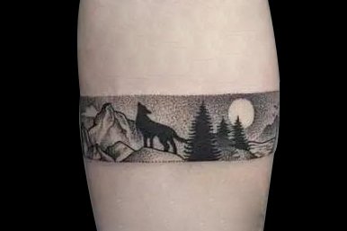 男生点刺技术臂环纹身,月夜狼嚎,傲视星穹。
