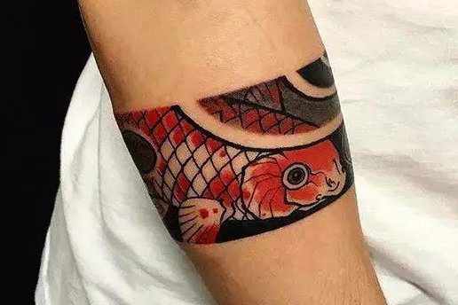 锦鲤臂环纹身,颜色鲜艳,非常带喜。