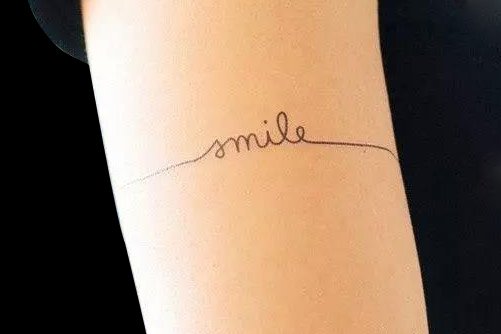Smile英文臂环纹身,提醒自己要笑迎人生