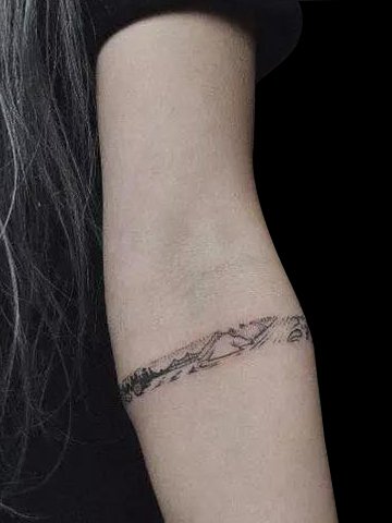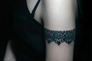不想太夸张,不妨试下这款简单线条的蕾丝臂环纹身。