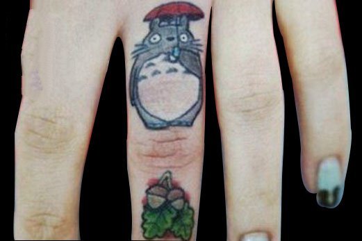 纹在手指上撑着红雨伞的小龙猫,推荐给也喜欢美甲的美女朋友们。