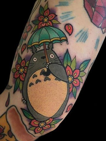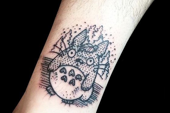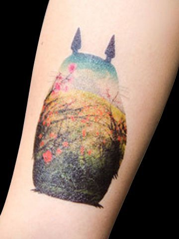 纹在手臂上简单而经典的龙猫纹身,向我们单纯美好的童年致敬。