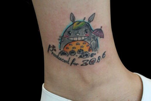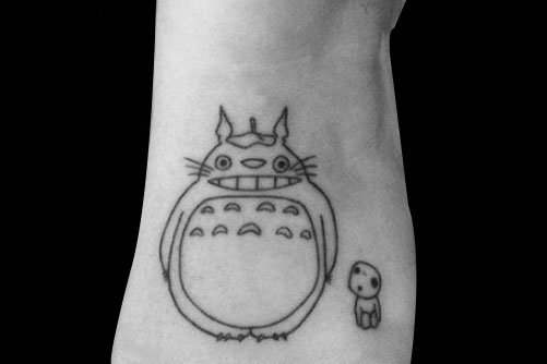脚背小清新龙猫纹身,表情搞怪却爱意满满。
