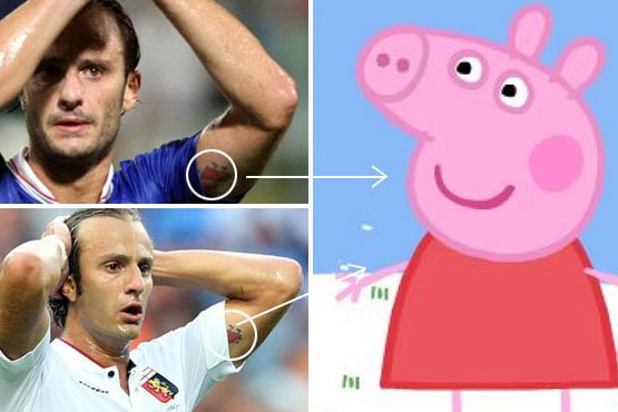 《小猪佩奇》是一部英国儿童动画片,但是却深受全世界宝宝的喜爱。当然这里的“宝宝”不只是小baby哦。看,意大利2006年世界杯的冠军队成员吉拉迪诺竟然在他的手臂纹上了小猪佩奇纹身!不得不说小猪佩奇魅力真的不是一般的大,连球星都抵挡不了。
