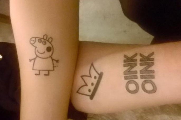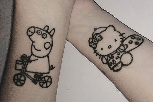 作为同是经典卡通形象的Hello Kitty猫,跟小猪佩奇搭在一起竟然出奇的和谐,果然可爱的东西不管怎样都会惹人喜欢。还在想跟另一半纹什么情侣纹身好吗?小猪佩奇跟Kitty猫你们值得拥有。