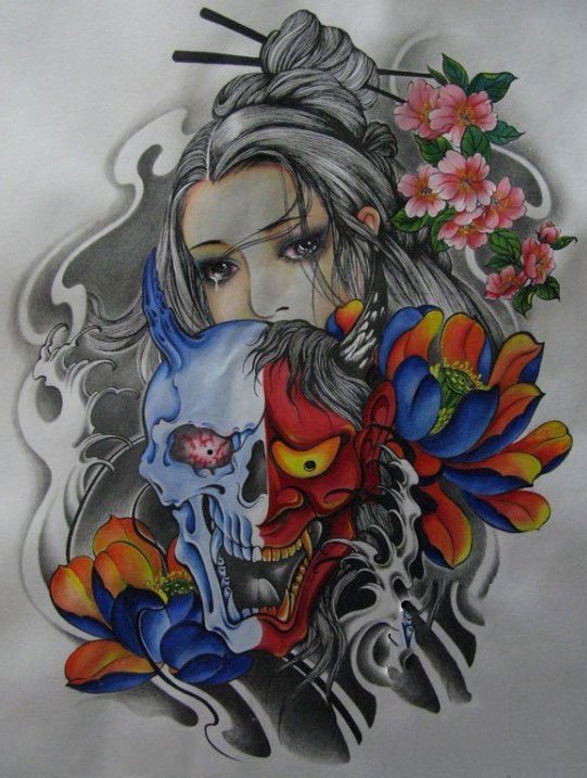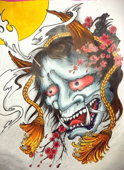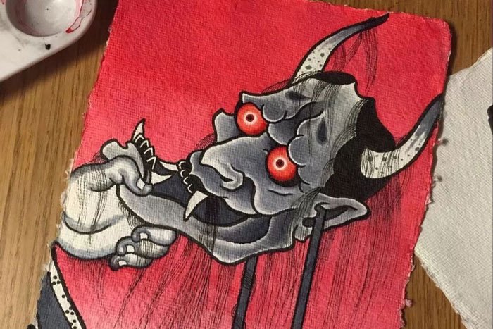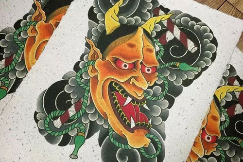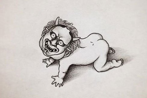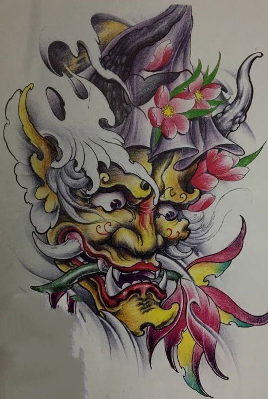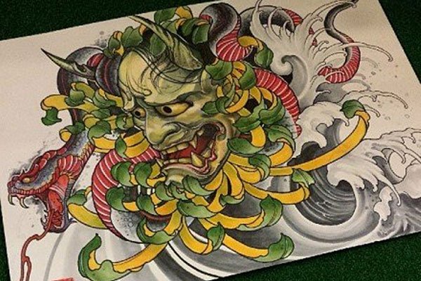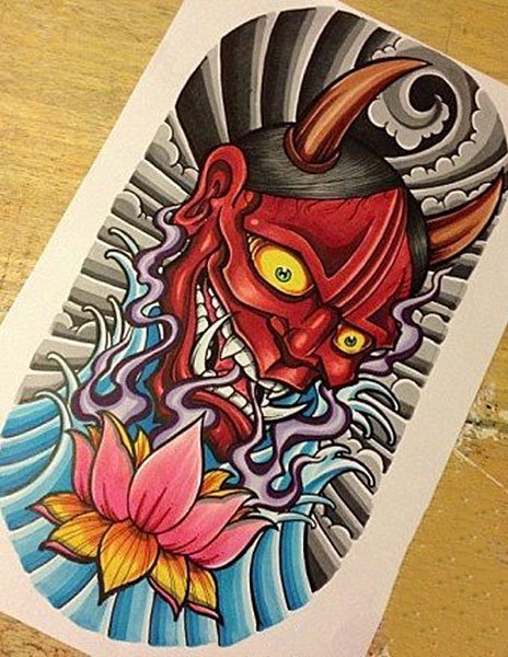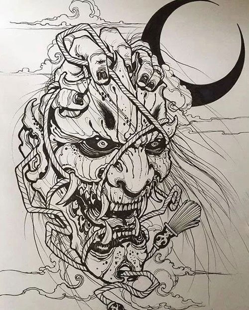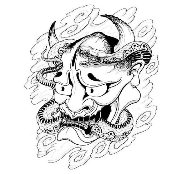 据说般若是一种怨灵,在佛教中有“智慧”之意,常用来辟邪。用精致的线条、细密的笔触所描绘出的般若纹身手稿,辟邪功效自然倍增。