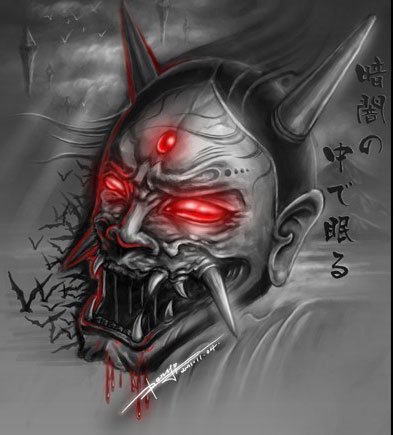 眼睛散发着令人恐怖的红光,张着血盆大口的般若,着实吓人,背后的蝙蝠与低于一般的环境,自然能够吓退一切恶鬼。
