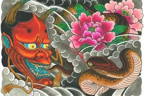 虽然大多数蛇都带有剧毒,但是凶猛的蛇却是长寿的象征,与护身符一般的般若以通出现,在盛放的牡丹之中为人带来好运与财富。