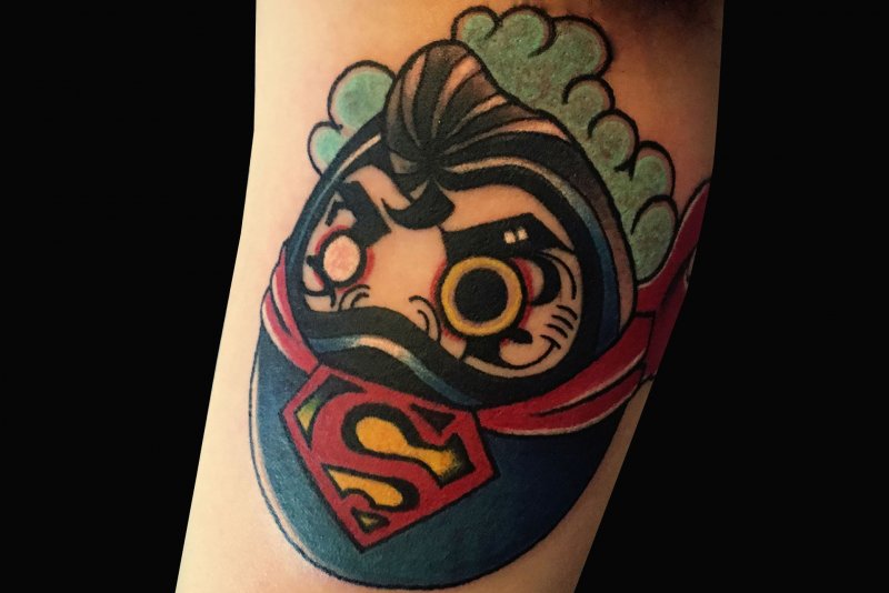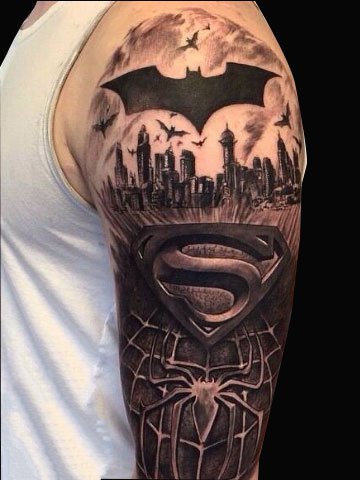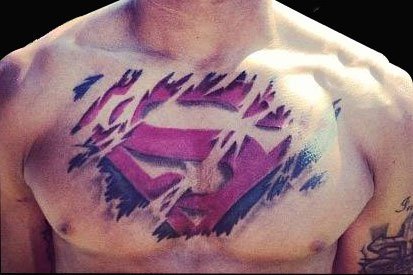 超人是漫画史上第一位超级英雄,有着与生俱来的超能力。蓝色紧身衣和红色斗蓬是他的标志,正义感和同情心促使他在危机时刻挺身而出,行侠仗义,拯救世人。将如此强大之人纹在身上,自然会衍生出强大的力量。