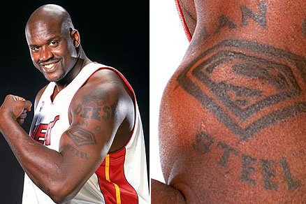 湖人队奥尼尔平时说话柔声细语,扣篮时却如飞人下凡,正如他胳膊上的超人标记,平时他是一位柔弱的记者,有紧急情况时便化身超人。