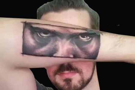 这个借位搞笑纹身…就像换了一张脸,十分地有趣,富有创意!
