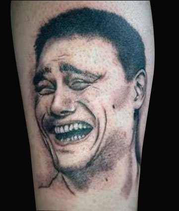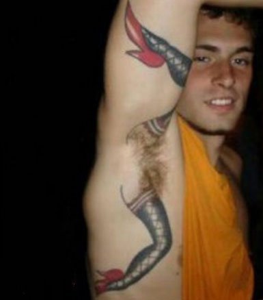 帅哥,您千万不要举起手臂,你这款纹身虽然搞笑,但是也是真的十分辣眼睛!
