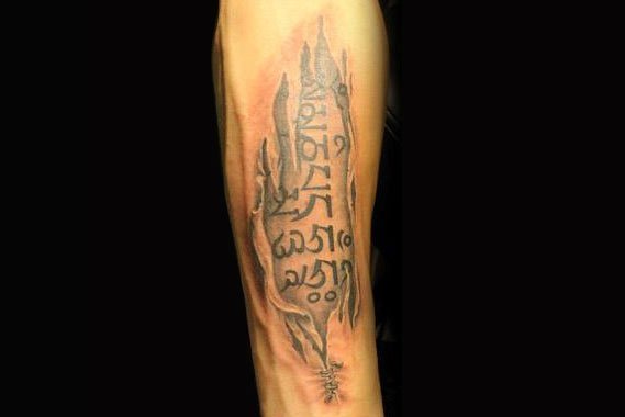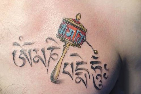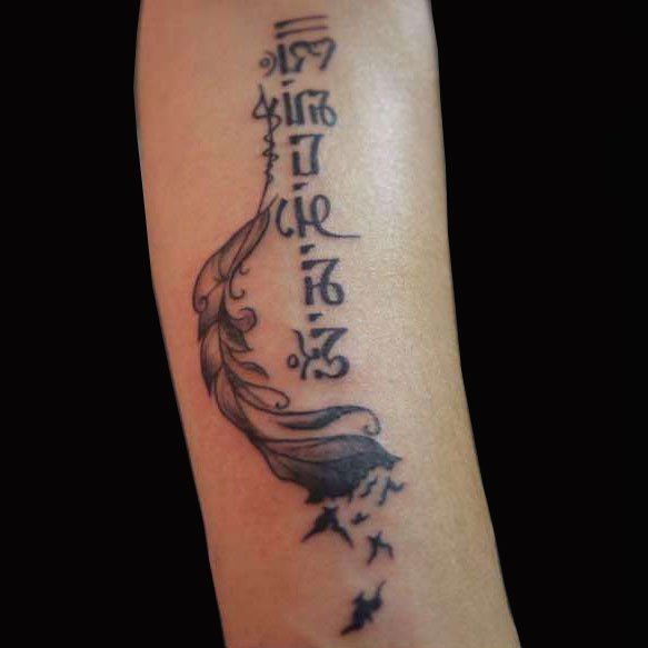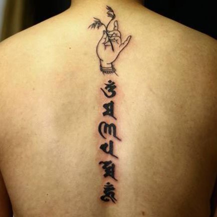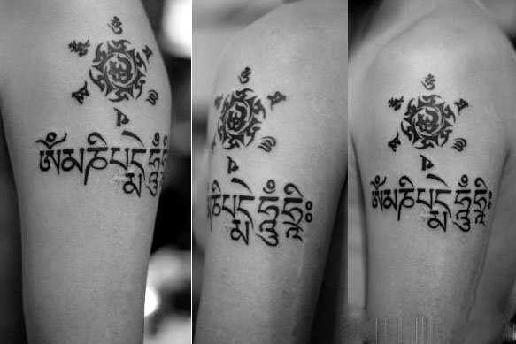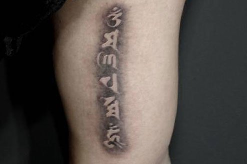 也许很多人并不懂得梵语,但是六字真言绝大多数人都知道。六字真言“唵嘛呢叭咪吽”,是大慈大悲观世音菩萨咒,它源于梵文,象征一切诸菩萨的慈悲与加持。将六字真言纹在身上,整个人将拥有无穷的力量。