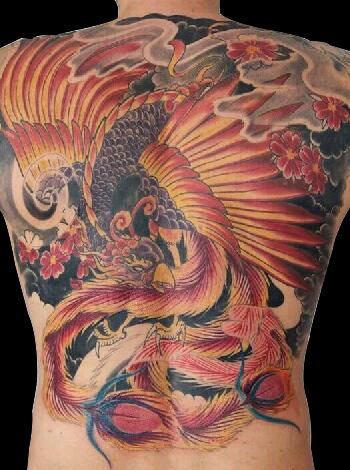 色彩绚丽的火凤凰满背纹身,纹在背部,尊贵无比!