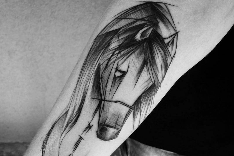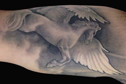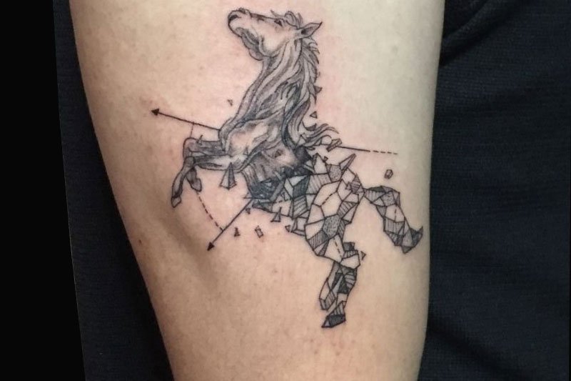 一匹骏马抬蹄、嘶鸣,在被弓箭射中之后,义无反顾地撞破了身上的躯壳,就像被生活击打后的自己,冲破世俗的枷锁,宛若新生。