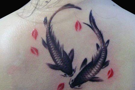 交织在一起的锦鲤将所有的好运圈在一起,将所有的烦恼隔绝在外,散落周边的花瓣像是一张张红唇,诉说着生活的美好。