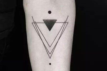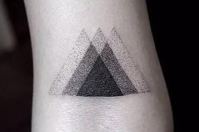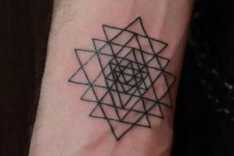 或者是这款三角形正反堆叠的几何纹身,带给人们一种眩晕的视野冲击,创意十足。