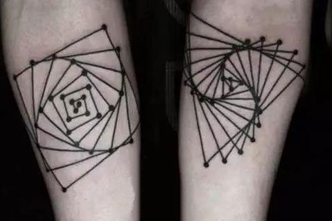 或者是正方形结合三角形的呼应,组合而成的图案纹身同样十分有创意。