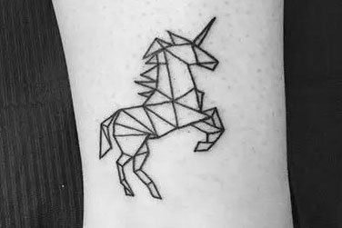几何独角兽,纹在脚踝附近十分地可爱,夏天穿裙子或着短裤,更为你的魅力加分!