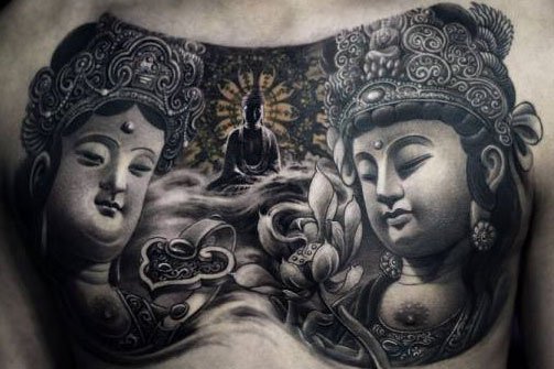 佛教之中佛像甚多,各个法力无边,要说至高无上的存在,非大日如来莫属。大日如来是诸佛法身、密教之祖,将它纹在身上,自然万事遂愿。
