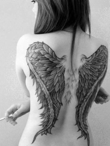 有的人认为,后背是女生最迷人的地方。女生柔软的身姿加上迷人的曲线,性感而又美好,美好到甚至就像是一个长着翅膀的天使。这款纹身里的翅膀,也更加凸显了女生的曲线美。