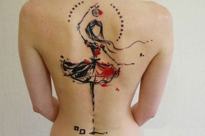 很多女生小时候都有一个关于跳舞的梦想,这个纹身里正在舞动的小女孩,像极了我们当初自己一个人偷偷踮着脚跳舞的样子。喜欢穿露背装的女生很适合这款纹身,能让你的性感多几分俏皮与可爱。