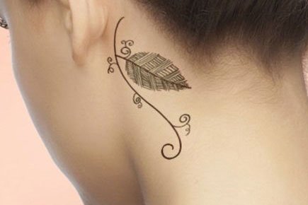 其实,耳朵后面也是女生纹身的一个绝佳位置。当微风吹过你的长发,耳朵后面的纹身若隐若现,秀气又精巧。就像下面的叶子纹身跟爱心纹身,简单又不失技巧,很适合纹在耳后。