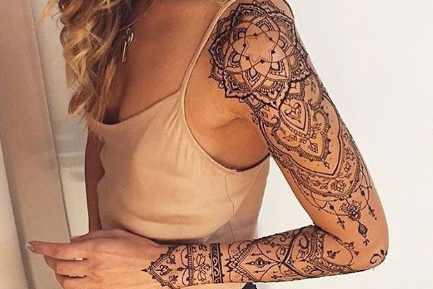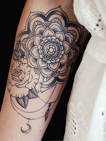 除了一些简单小清新的纹身,小编想也有不少女生喜欢较为复杂的纹身,而手臂就非常适合纹这种纹身了。就像下面这款花臂纹身,纹在女生手臂上不仅显得酷,还带着一丝柔美。谁说花臂只能男生纹呢?