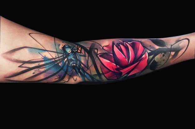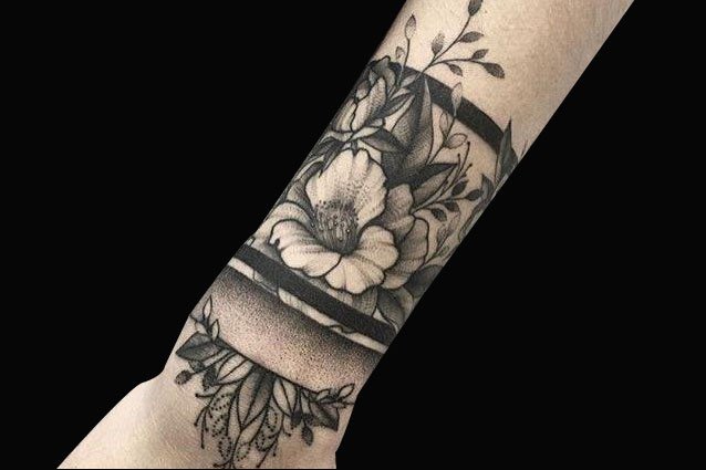 女生除了甜美,也一样可以很帅气。这款手腕纹身运用了大面积的花来做主图案,但整体风格又偏向朋克,将甜与酷中和得恰到好处,不得不令人赞叹。