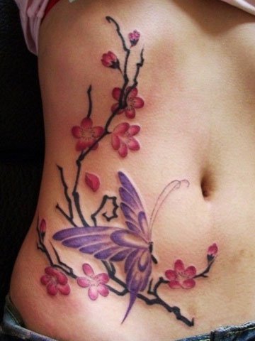 古代诗人曾把女人的腰比作柔软的杨柳枝,女生腰部那柔美的姿态,确实让人着迷。将纹身纹在腰部,更加能显现腰部的曲线。就像这枝盛开的桃花,散发的芳香让蝴蝶也不禁被吸引过来。我想每个女人,都希望自己能如花般绽放吧。