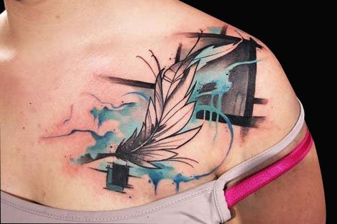 除了胸口,靠近肩部这个位置也是一个极佳的女生纹身位置。在这个位置纹上精致的纹身,能让穿吊带或者露肩装的你性感十足,妩媚又精致。