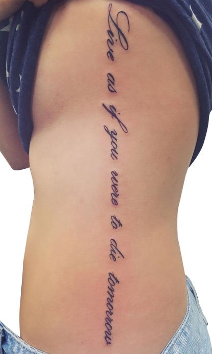 沿着腰肢纹上的小马纹身,梦幻中又带有艺术感;简简单单的一行英文纹身,既时尚,又凸显了腰部的美丽曲线。