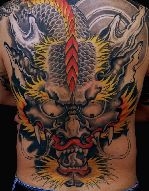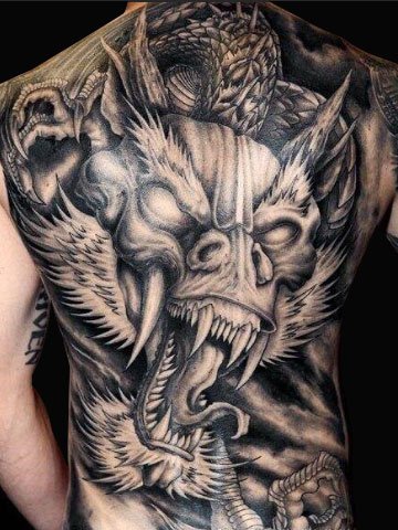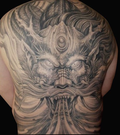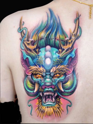 满背霸气龙头,十分威武的一款纹身图案,让你看上去威武,个性十足!彰显男人独特的气概。