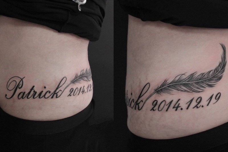 还可以纹上特别的日期和文字来遮盖妊娠纹,记录自己的生活历程。