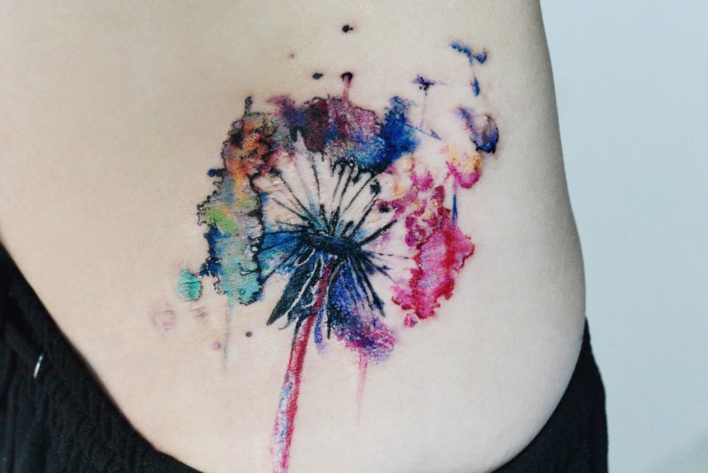彩绘风格的蒲公英纹身,遮盖效果很好,适合小面积妊娠纹。