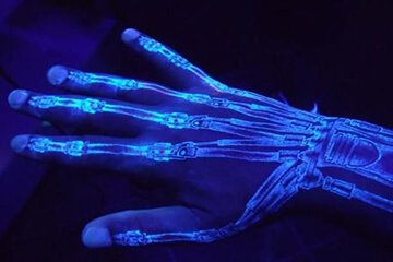 小编提醒一句,荧光纹身刚纹好的时候并不是完全隐形的,皮肤上会有浅白色凸起的线条或图案,需要经过时间的流逝,纹身才会慢慢变浅。