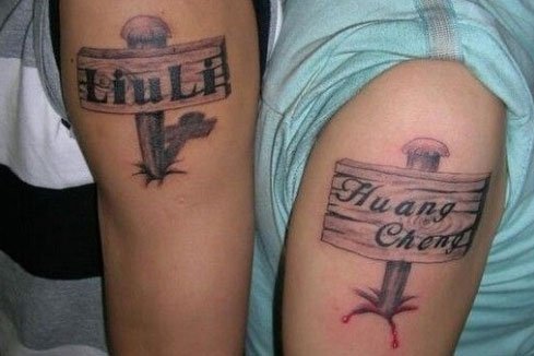 这种情侣名字纹身,要是分手了,就让人产生一种爱情坟墓的念想,有木有?