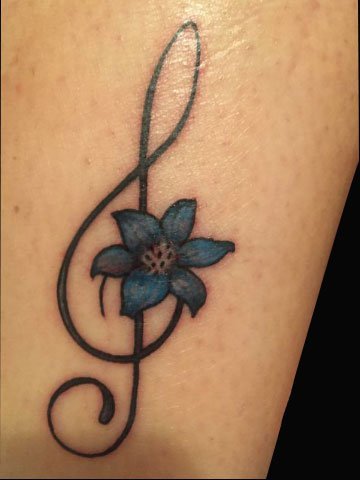 杜鹃花本就代表喜悦爱的,加上音符图案的蓝杜鹃花纹身,仿佛是为美好的爱情在歌颂!