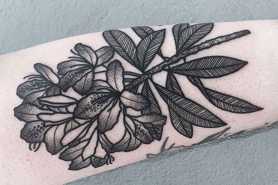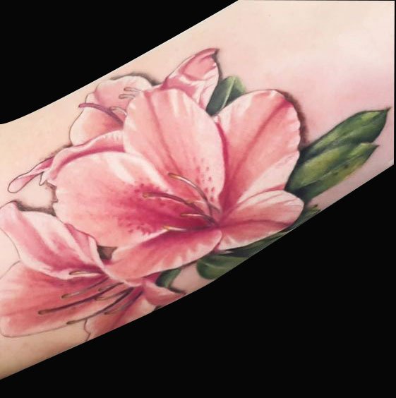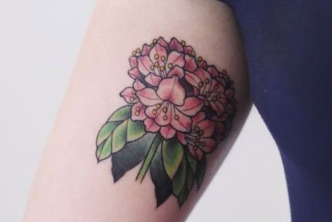 杜鹃花纹身与其他纹身元素结合,相得益彰。但单独刻画也美妙至极!手臂上那一簇粉嫩的杜鹃花纹身,实在小清新,试问那个女生看了不心动呢?